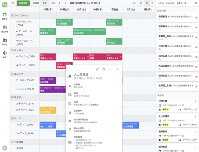 具体的に言うと収集運搬事業者さまの配車業務を効率化する配車表と、