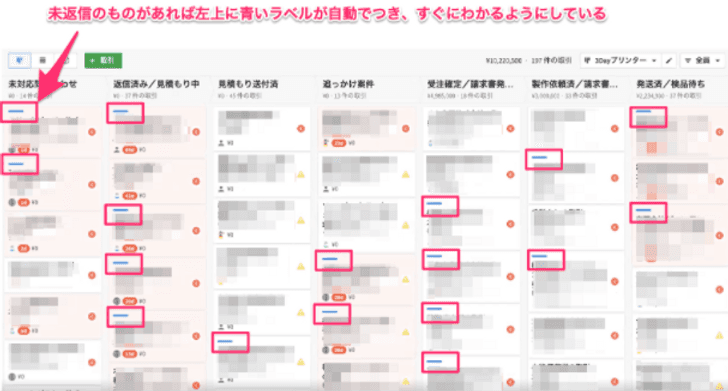 ただ、2〜3週間返信がなく急にやっぱりお願いしますということもあるので、その時に対応できるよう、失注に処理されたものも、ご連絡がきて再度アクティブになったら自動的に取引が復活するようにしています。
